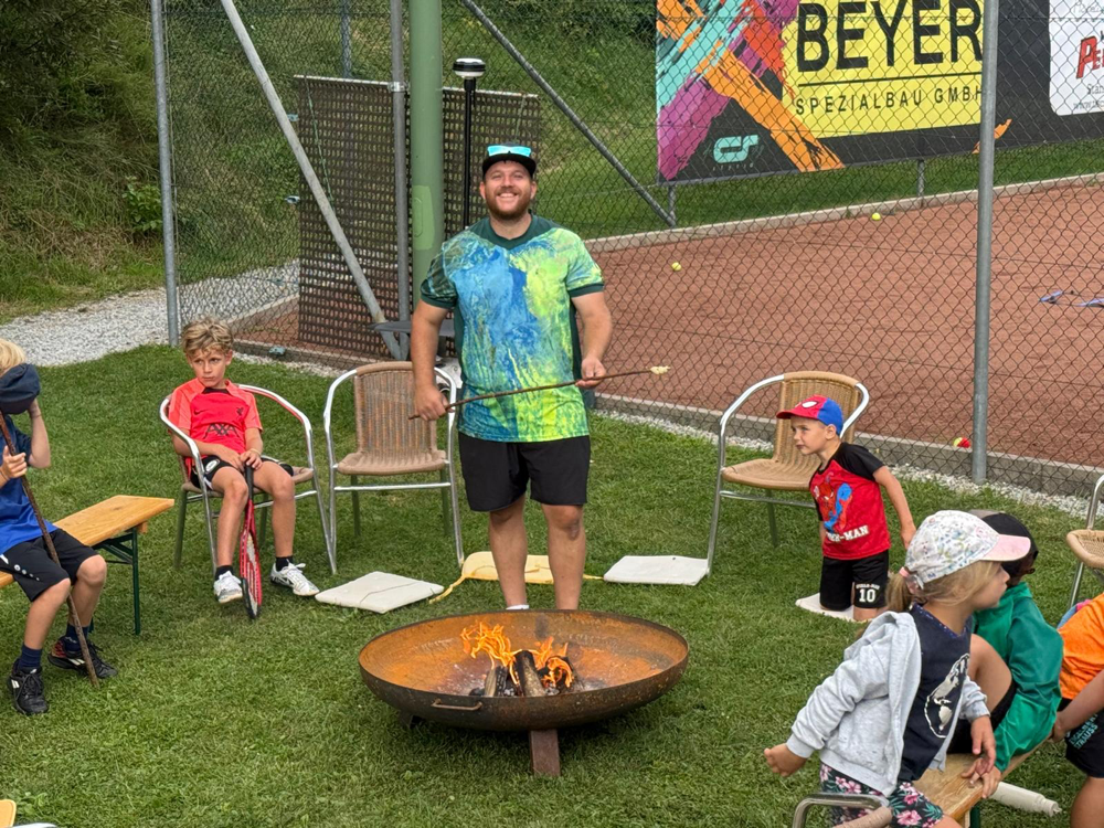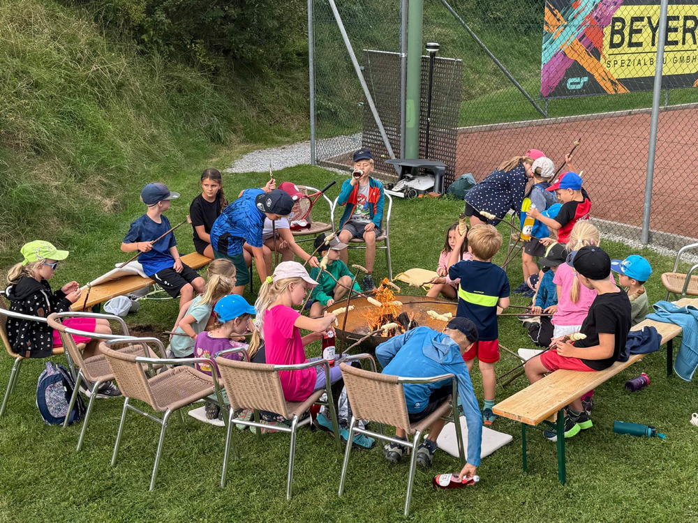 Sommer hinweg zu den wöchentlichen Tenniseinheiten begeistern. Als Abschluss des Kindersommers war der Ferienpass ein spielerischer Höhepunkt der mit einer Grillerei am offenen Feuer gekrönt